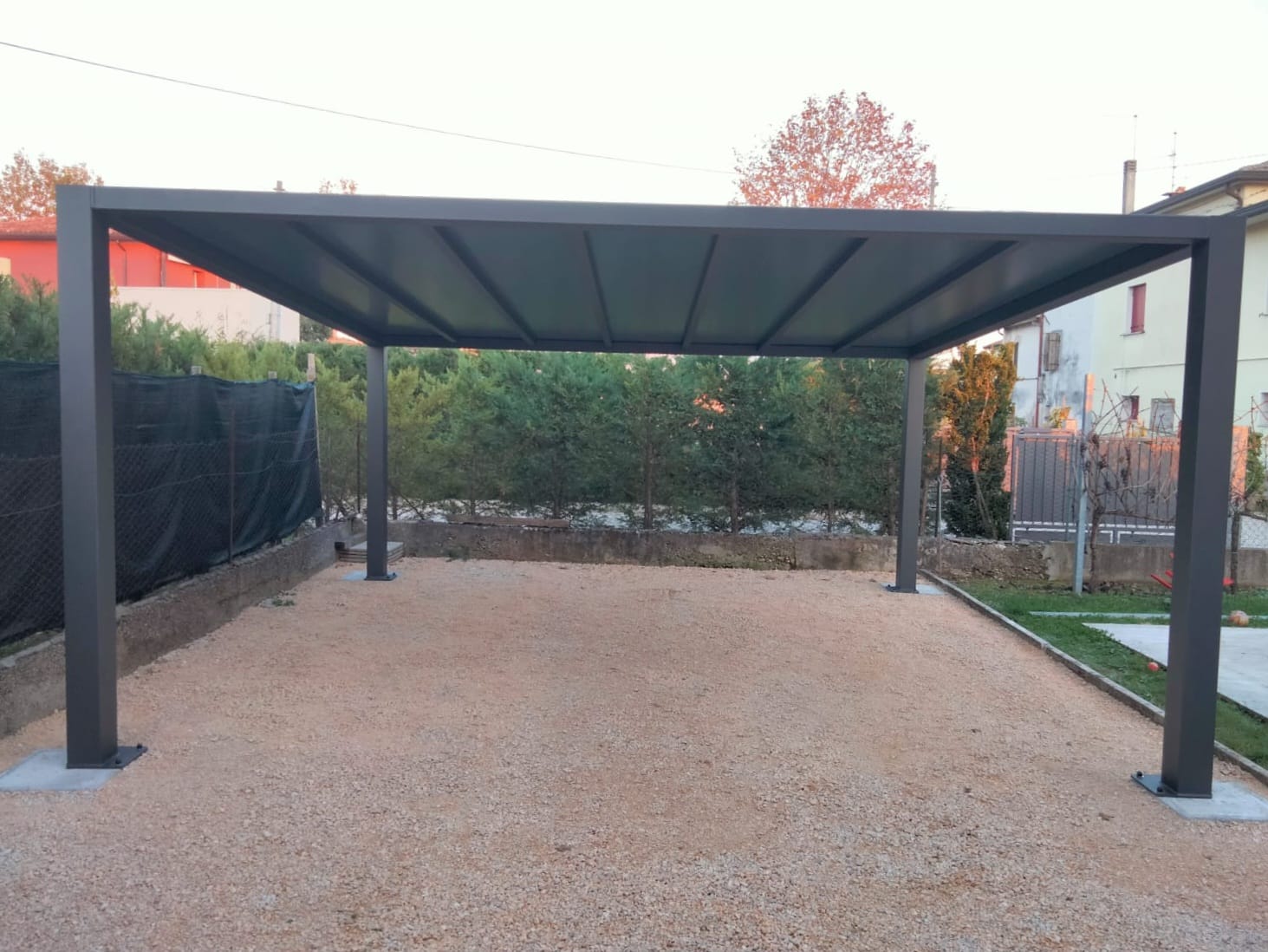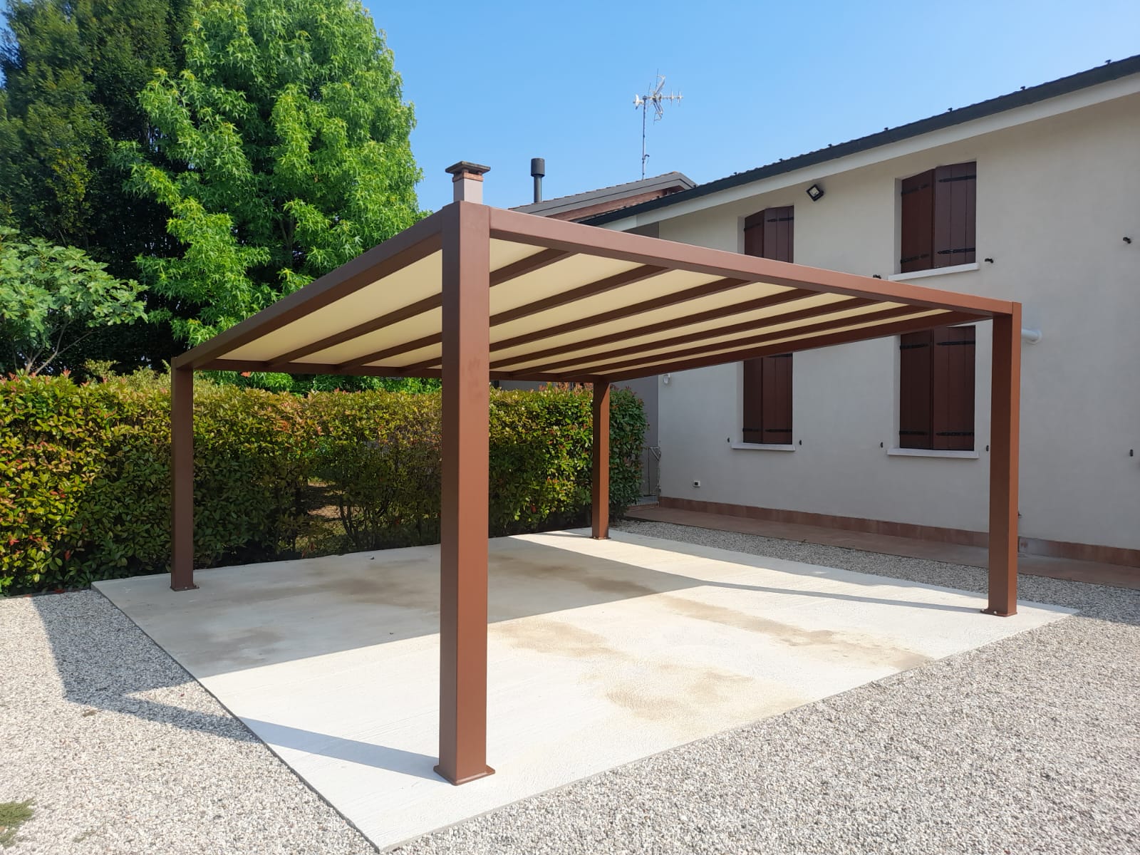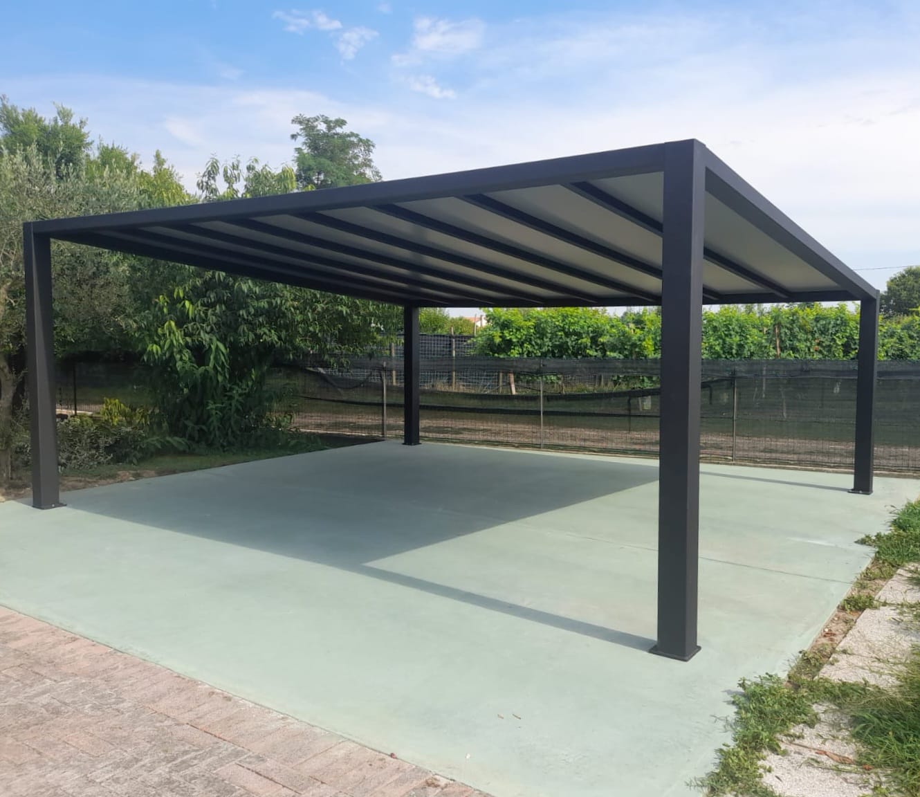Una pompeiana in ferro è ideale per proteggere l’auto dalle intemperie, inclusa la grandine. Le misure consigliate partono da 3×5 metri per un’auto singola, mentre per due auto è possibile realizzarla in dimensioni di 6×5 metri. Anche in questo caso, in molti comuni rientra tra le opere di edilizia libera, con possibilità di beneficiare di un’IVA agevolata al 10%.