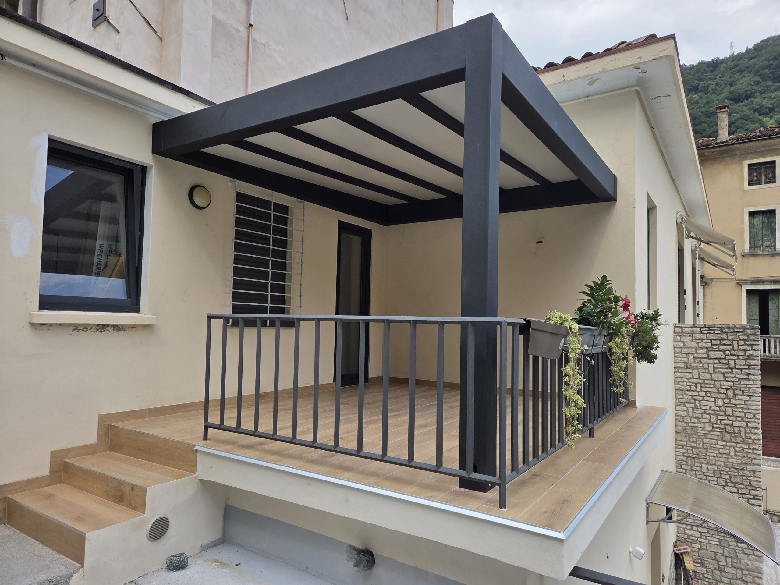 Se stai cercando una struttura resistente, elegante e funzionale per il tuo spazio esterno, una pompeiana in ferro è la scelta perfetta. Le nostre strutture sono realizzate con ferro zincato a caldo, garantendo massima resistenza agli agenti atmosferici e lunga durata nel tempo. Sono composte da travi perimetrali a sezione rettangolare e colonne quadre da 150×150 mm, con uno spessore di 3 mm. Inoltre, la verniciatura a polveri epossidiche, disponibile in qualsiasi colore della scala RAL, assicura una finitura estetica raffinata e una protezione duratura. Una delle caratteristiche distintive della nostra pompeiana in ferro è la presenza di una grondaia perimetrale integrata, che consente il drenaggio dell’acqua direttamente all’interno delle colonne. Questo sistema evita ristagni e protegge la struttura nel tempo, mantenendo un’estetica pulita e minimale senza elementi visibili.