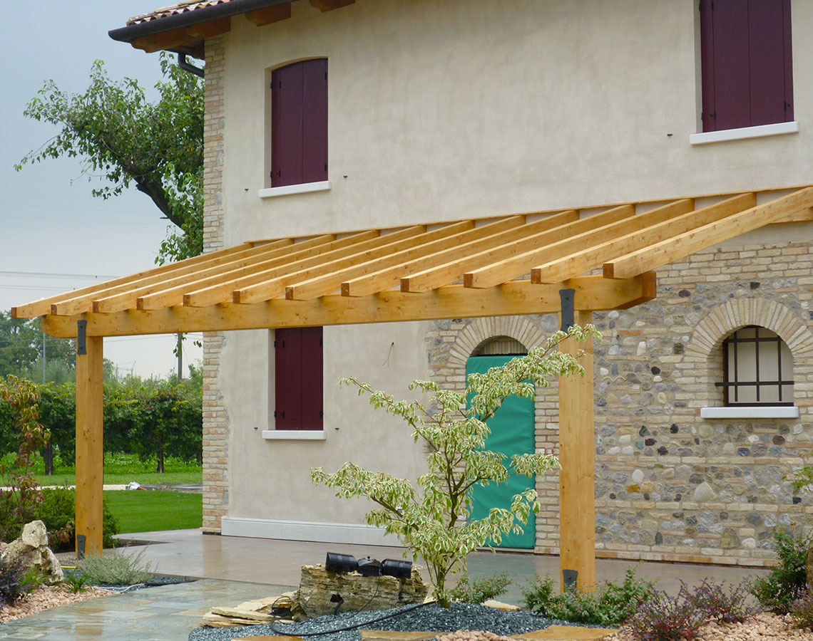 Le nostre tettoie in legno lamellare per esterni sono solide strutture debitamente pensate e personalizzate sulla base delle esigenze del cliente. Progettiamo differenti soluzioni a vari prezzi per i vostri spazi esterni: dalle tettoie per terrazzi alle strutture addossate a parete.